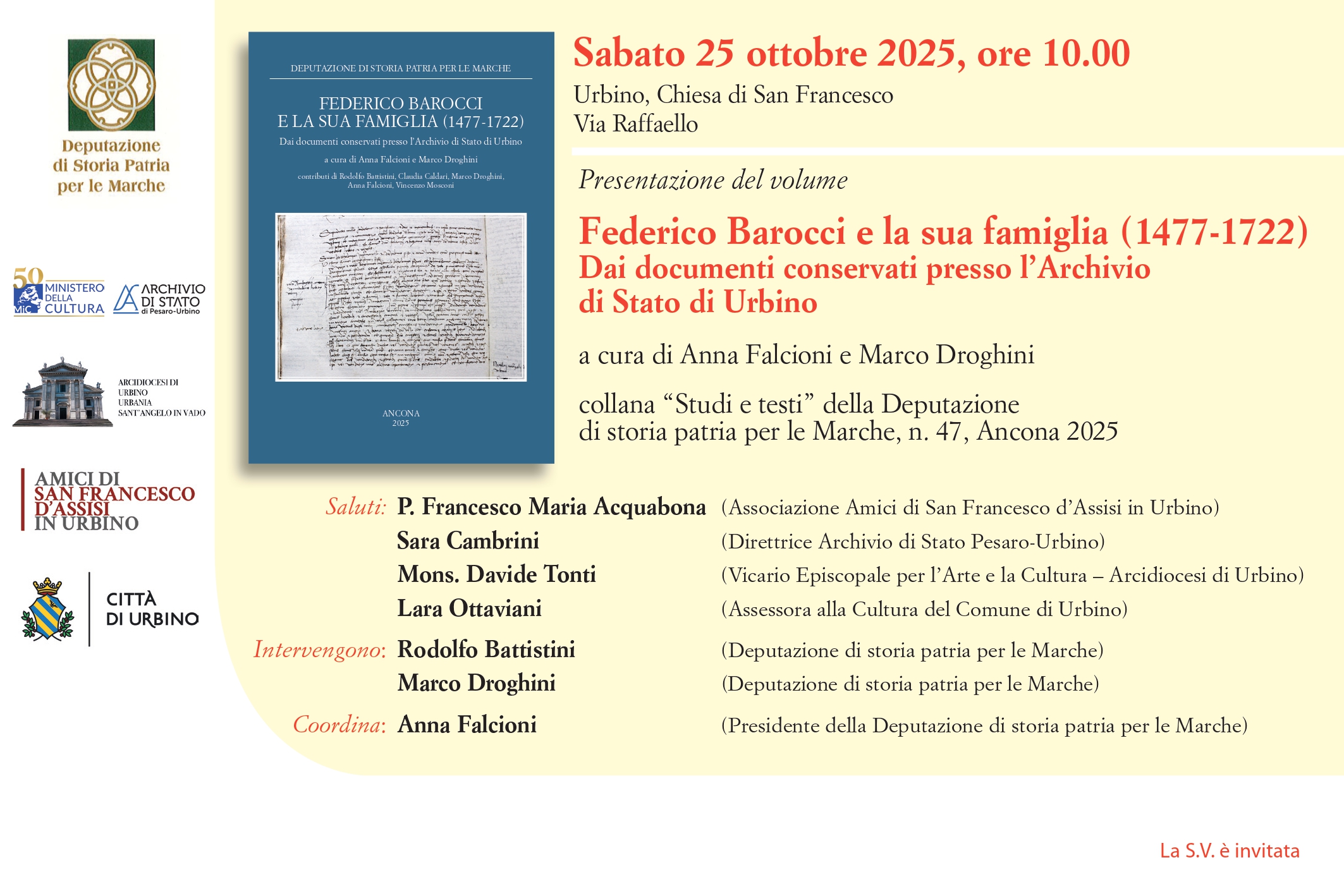Sabato 25 novembre, alle 10, presso la chiesa di San Francesco di Urbino, avrà luogo la presentazione del volume